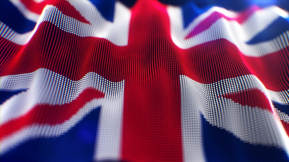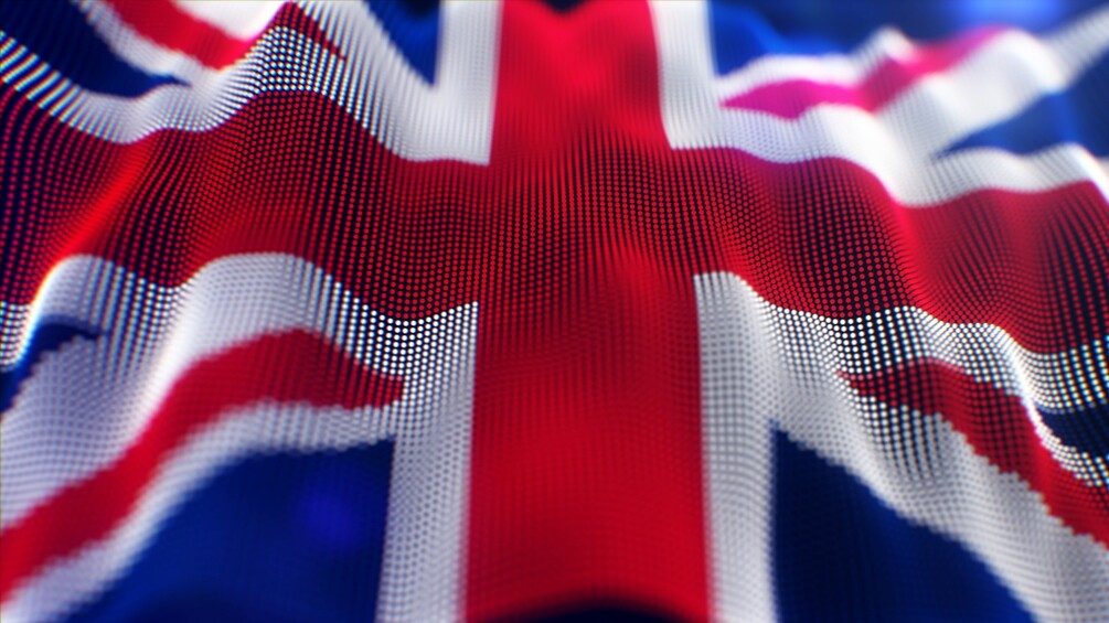 Waving flag of the United Kingdom of Great Britain from particles. Waves animation move across the flag from left to right. A stylized looped flag animation for the background.