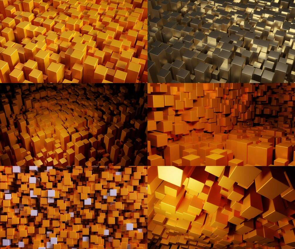 Seven wallpapers for your desktop consisting of 3D blocks randomly located on the screen.
