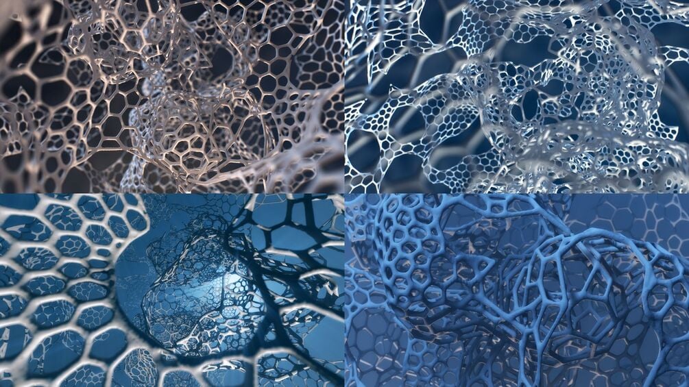 Four 8K Wallpapers for the desktop. The strange cellular structure looks like a web of bones.