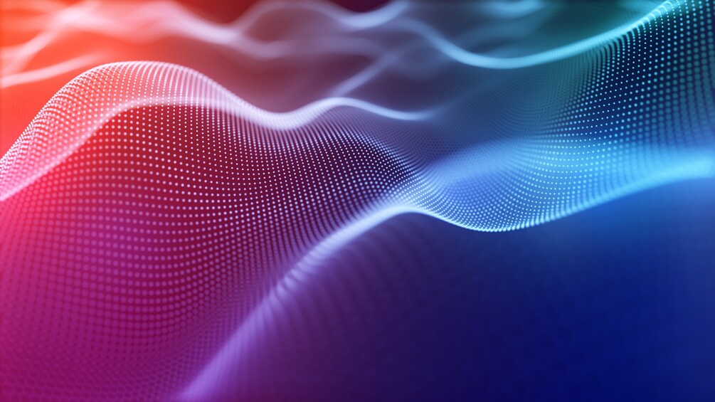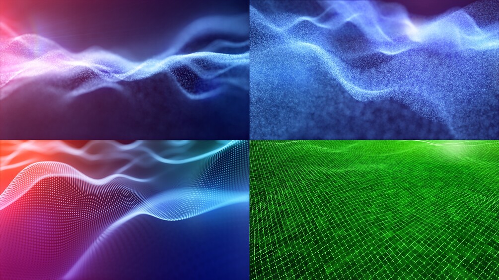 Four 8K Wallpapers for the desktop. This abstract desktop wallpaper has a lot of particles and dots that come together to create beautiful wavy patterns that extend into the distance.